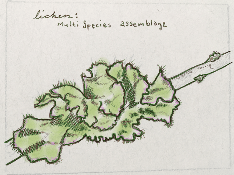 taking after the lichen, a possible gender identification people could inhabit is “multispecies collectivity” or “assemblage” or simply “multiplicity”, which de-emphasize the centrality of the human parts which comprise the superorganism or holobiont (holobiont is an assemblage of complex entangled lifeforms, which together form a discrete ecological unit) which we call a body and take to be a self. It is in the spirit of the lichen that tender space creates containers for queer ecologies, as a space for decentering normativities and opening to polymodal ways of being. acknowledging that each of us contain multitudes and are ourselves queer multispecies assemblages, this space does not locate queerness in gender or sexuality specifically.